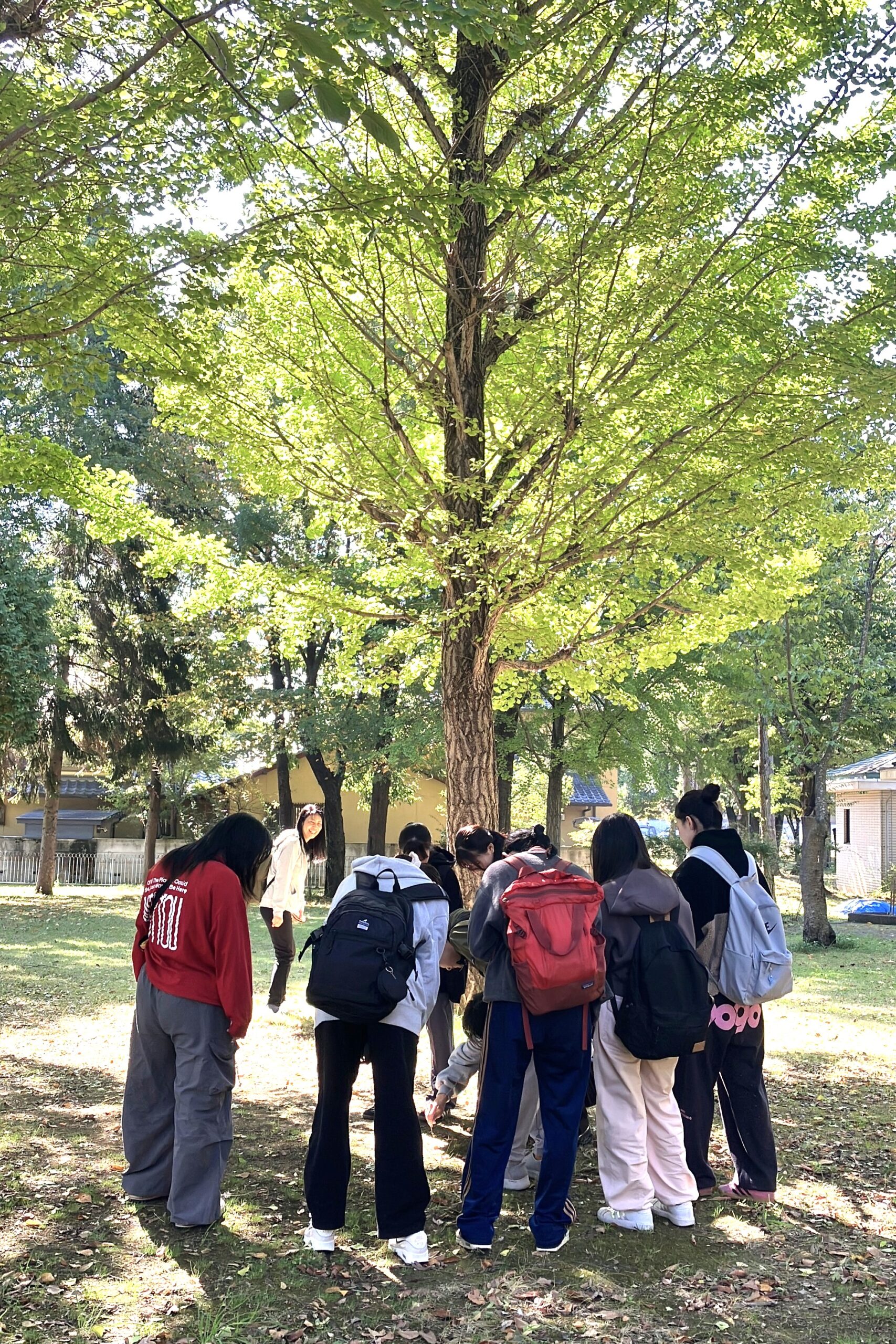 同じ公園内でも、見通しの良し悪しで年齢に応じて安全に遊べる場所が違ってくること。また、どんぐりの木やイチョウの木などの植物の見分け方も教えてもらいました。(イチョウの木があったら銀杏に要注意!実際の匂いもちゃんと確認しました。笑)