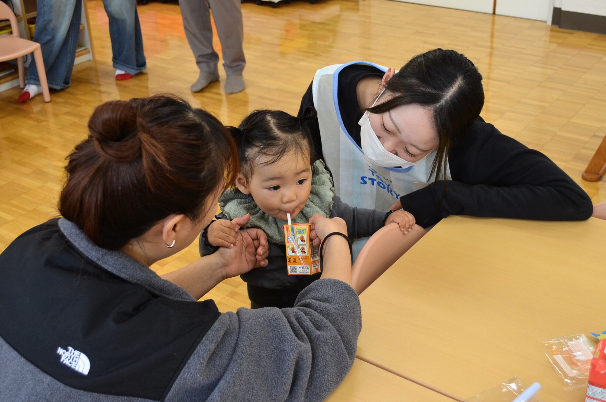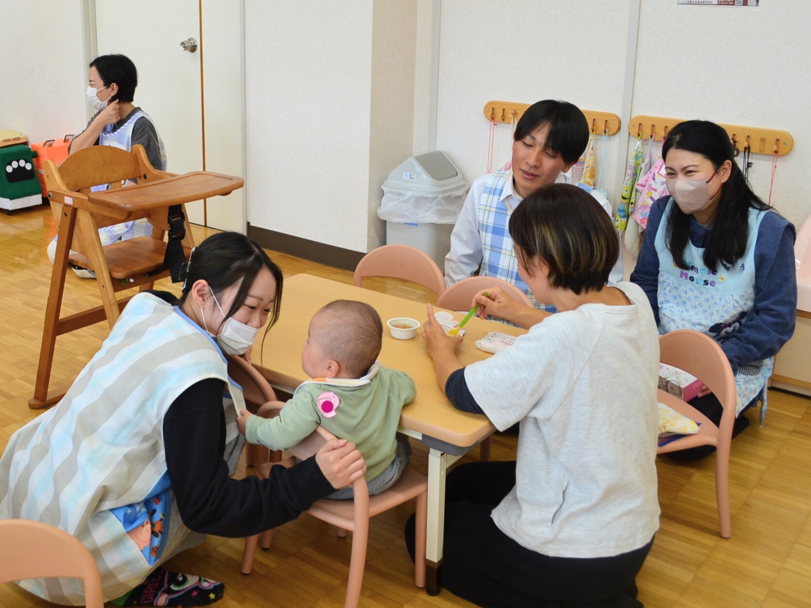 抱っこやおむつ替え、またミルクや食事のお手伝いなど、学生に体験させてくださる事も。