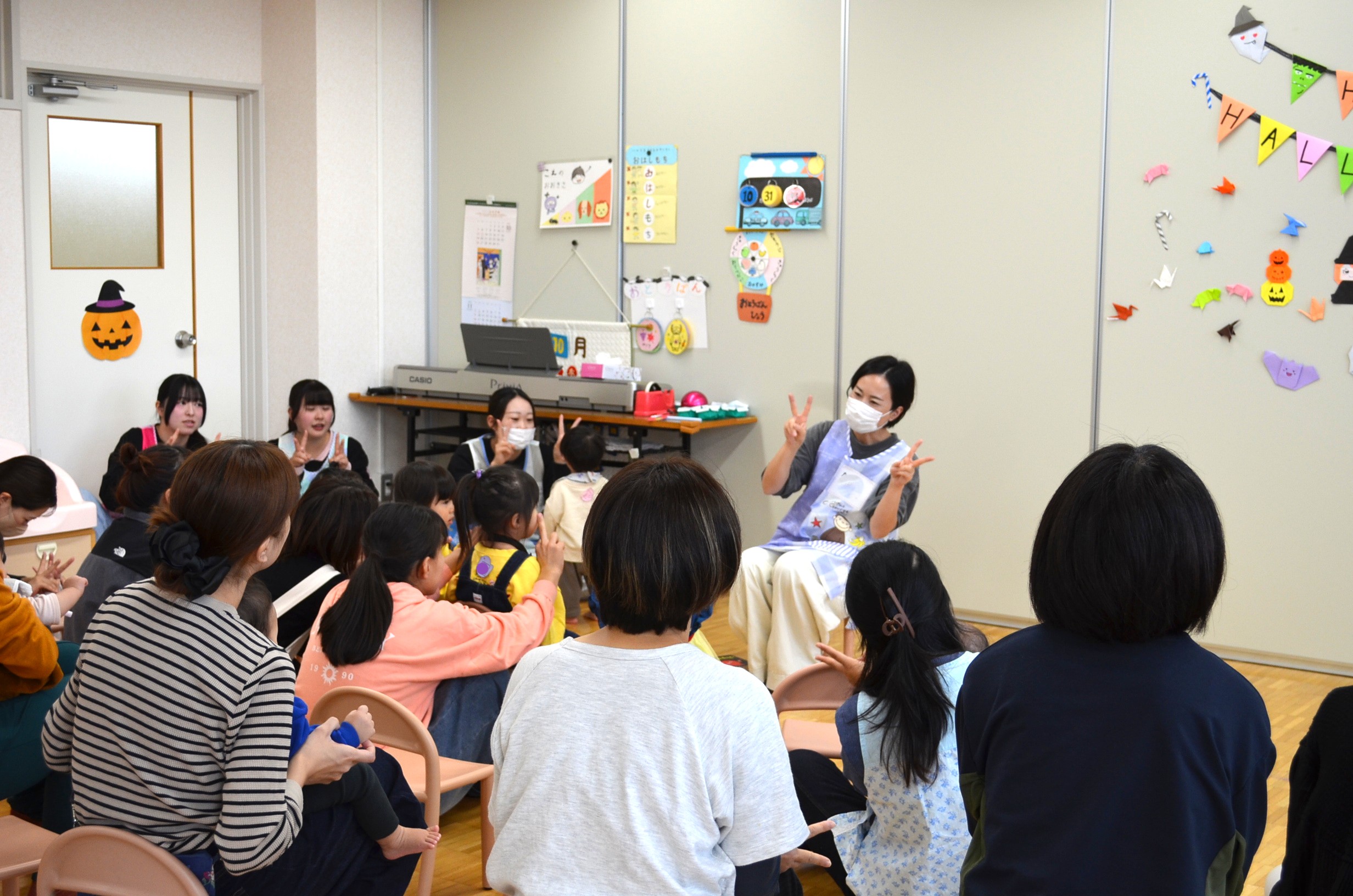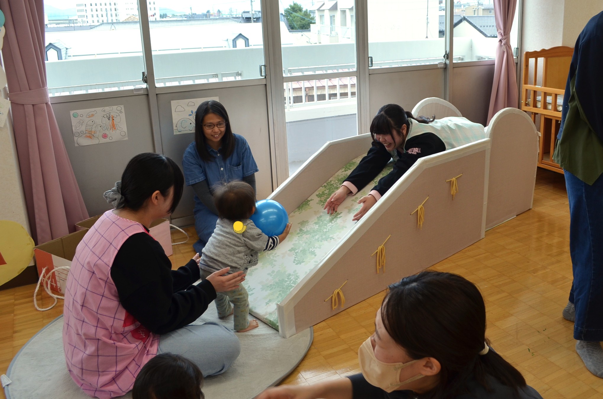 手あそびや、読み聞かせ、また学生が企画した活動など、授業内で学んだことを実践できる場でもあります。