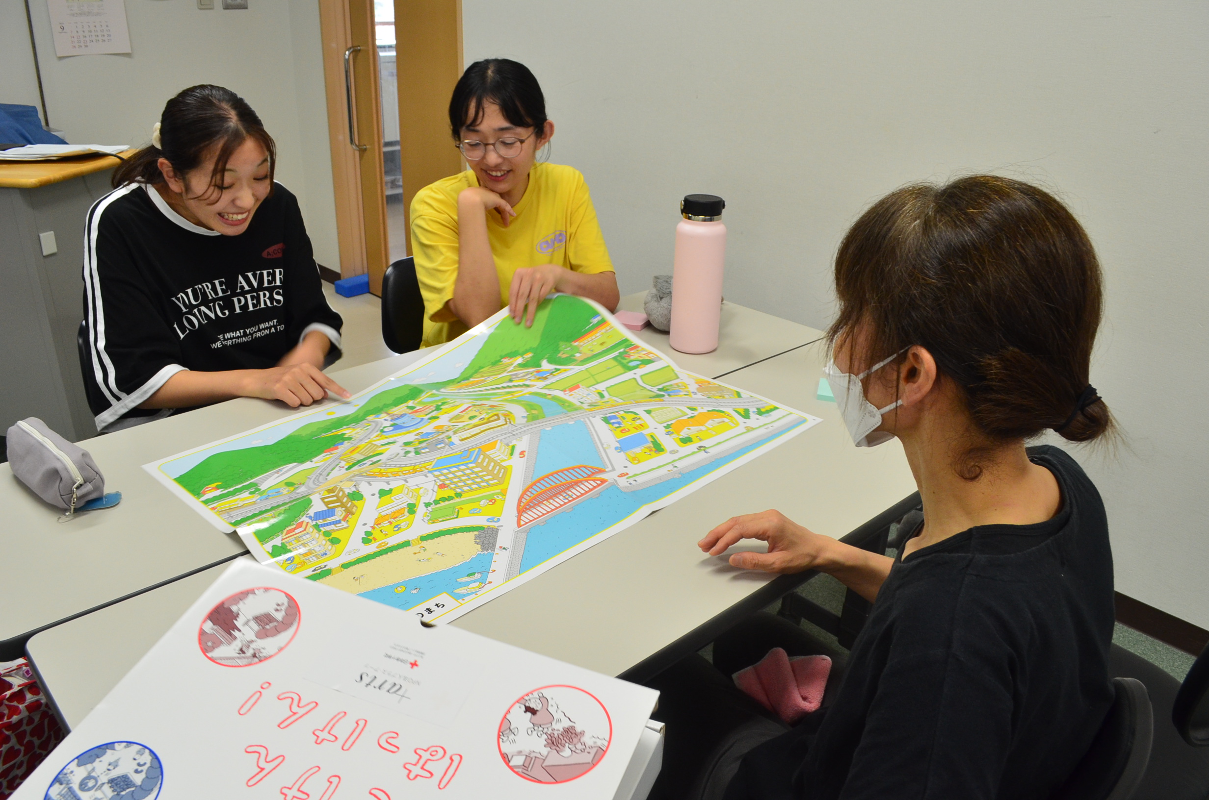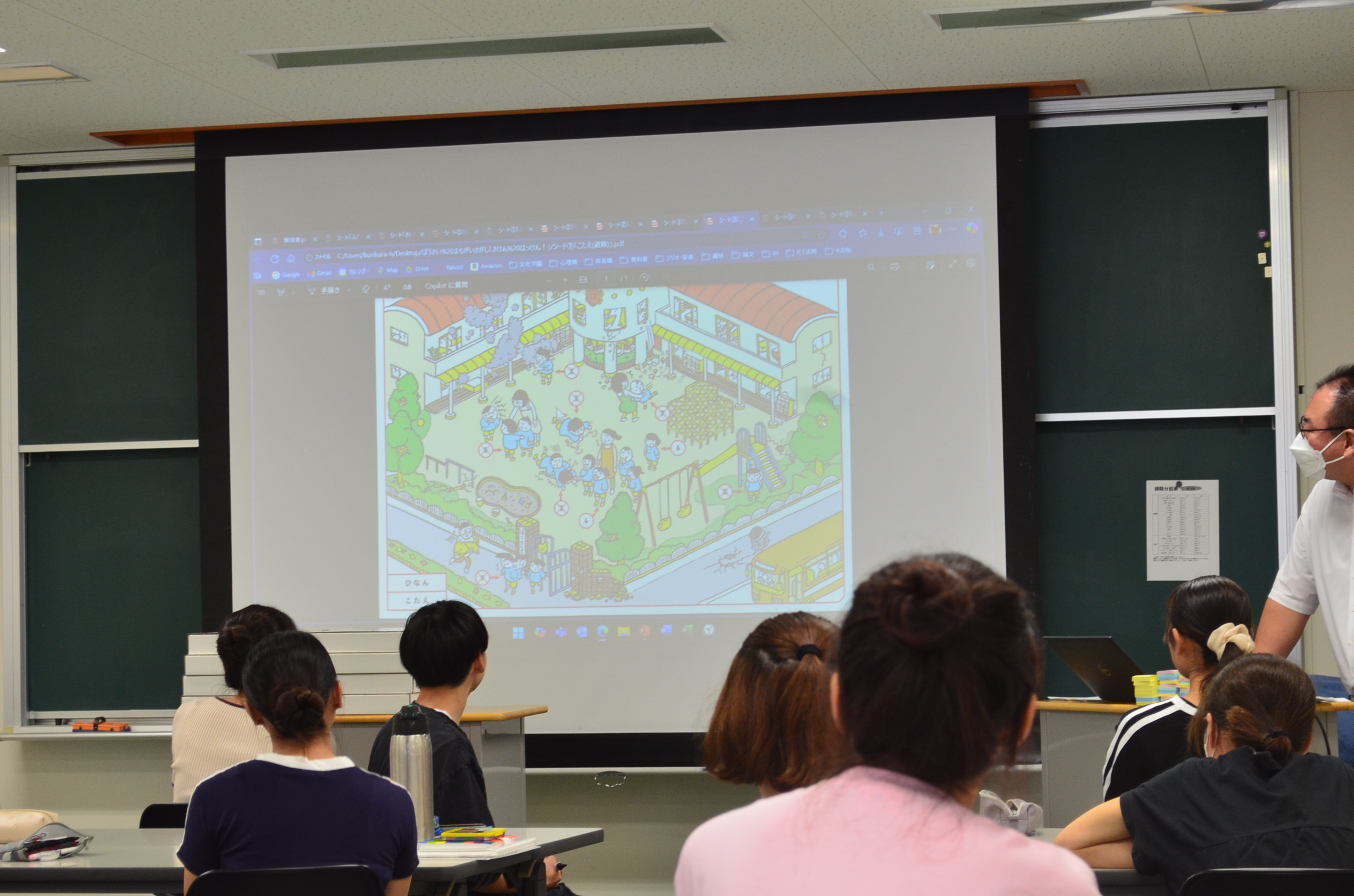 日本赤十字社監修の「ぼうさいまちがいさがし きけんはっけん」の教材を使用し、災害発生時に行う防災について皆で考えました。