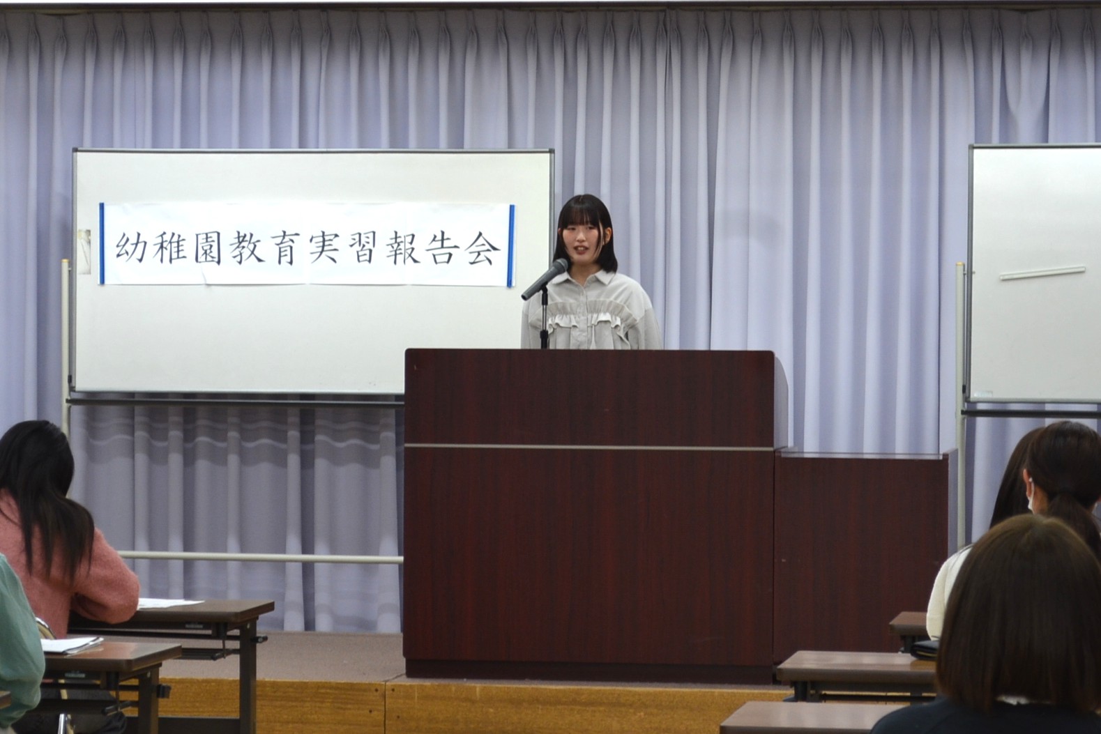 1年生が11月に2週間にわたり行われた、初の本実習となる教育実習について報告してくれました。