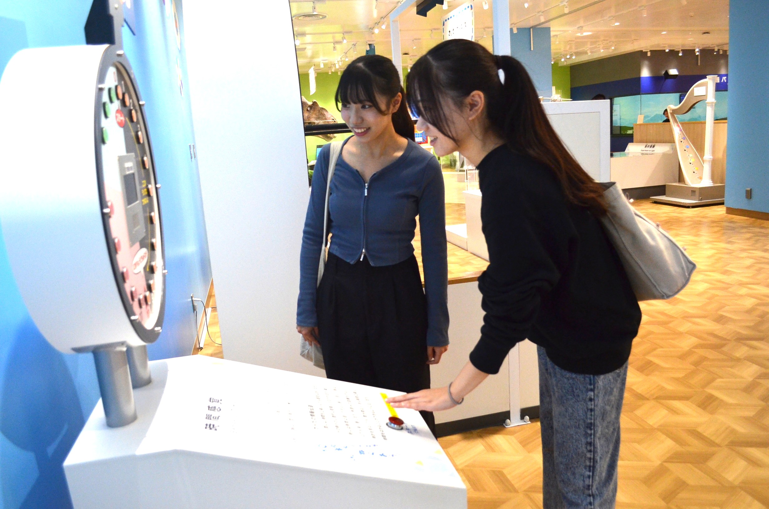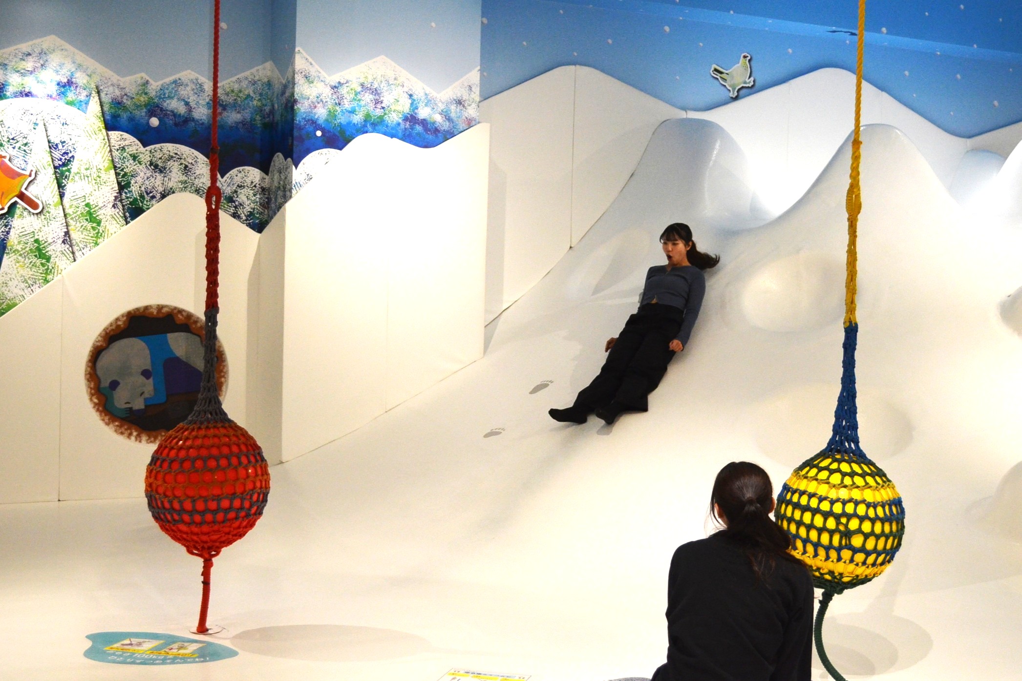 安全面の配慮やこども達がより楽しめる工夫とは何かを知ってもらいたいという職員の方々の想いで、施設について説明していただいたり、通常学生の年齢では使用できない遊具も体験させていただきました。視察後半では授業の一環として小学校の児童たちが大勢訪れており、学生達はその姿を見て、年齢こそ違うものの、「自分が子ども達を連れてくる時は・・・」と春から始まる現場での生活に思いを馳せている様子でした。