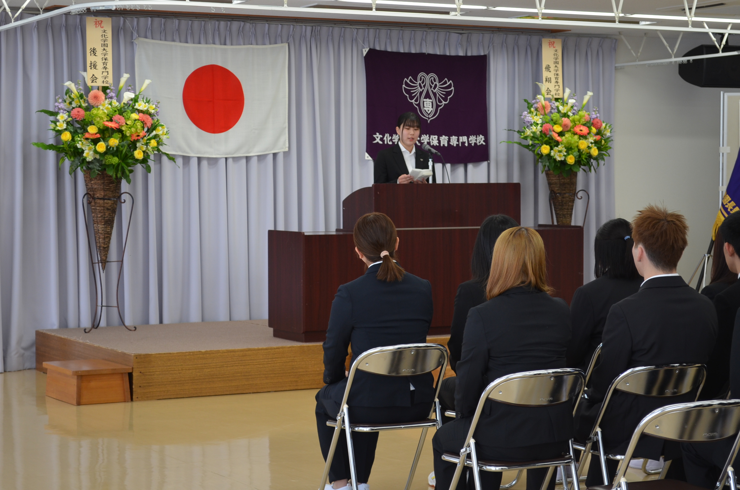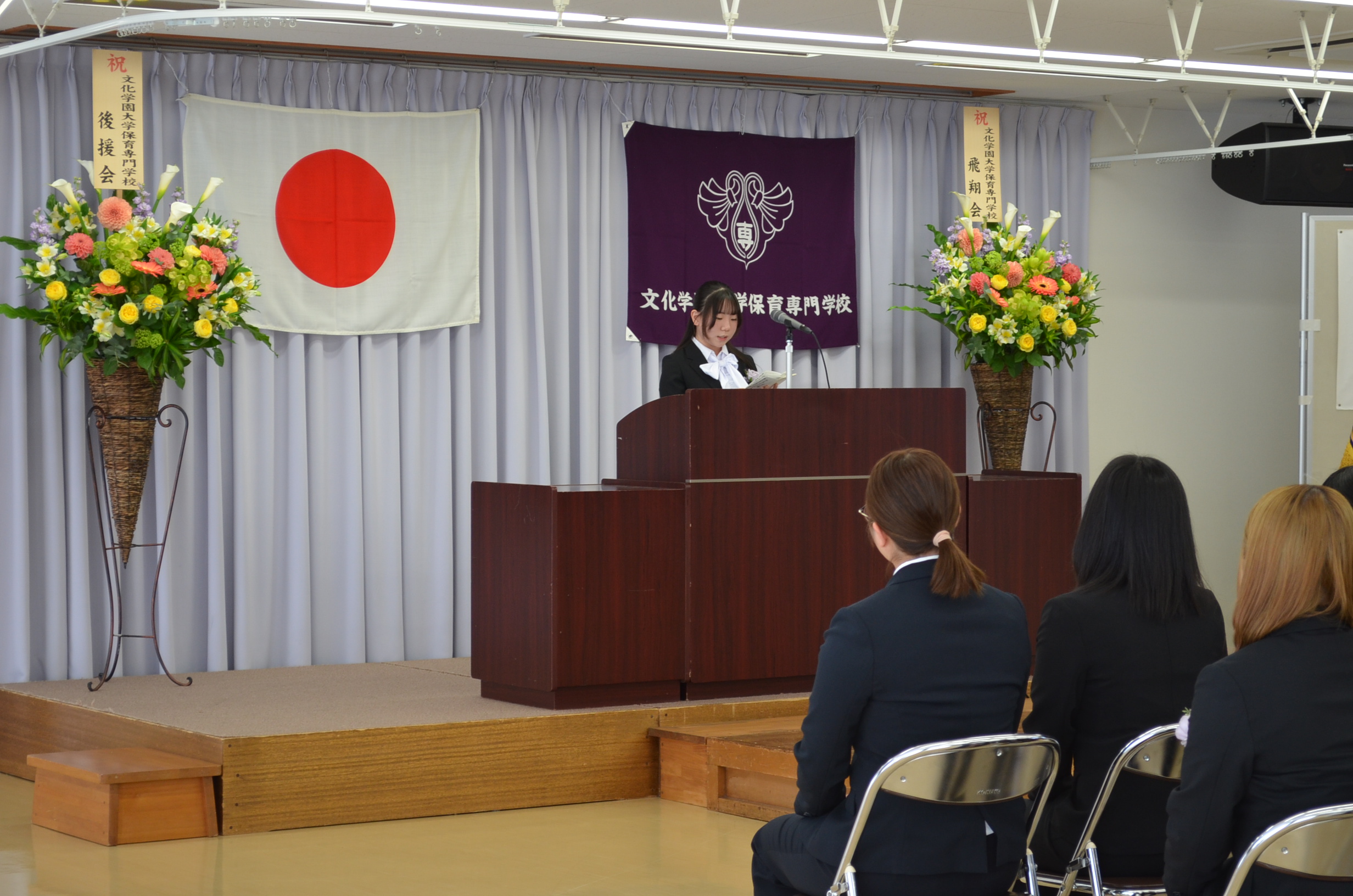 式では、保育者という職業の尊さに触れ、その道を目指す新入生達の誇りと意欲を支えてくれるような激励のメッセージがたくさん送られました。